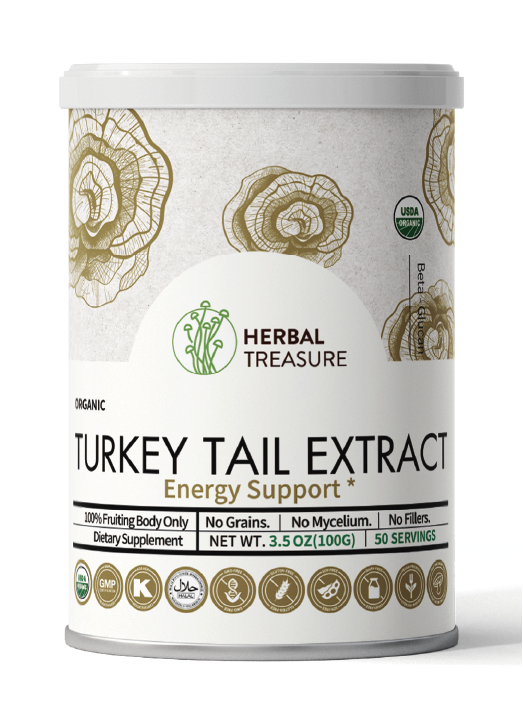 Turkey Tail is named after its colorful appearance resembling the tail of a wild turkey. It is a masterpiece of nature's color aesthetics. It is widely distributed in forests all over the world, symbolizing the inclusiveness and diversity of the earth. This product extracts the essence of the forest's colors and aims to infuse the body with natural energy support, just like the freshness and vitality of a forest after a rain.
